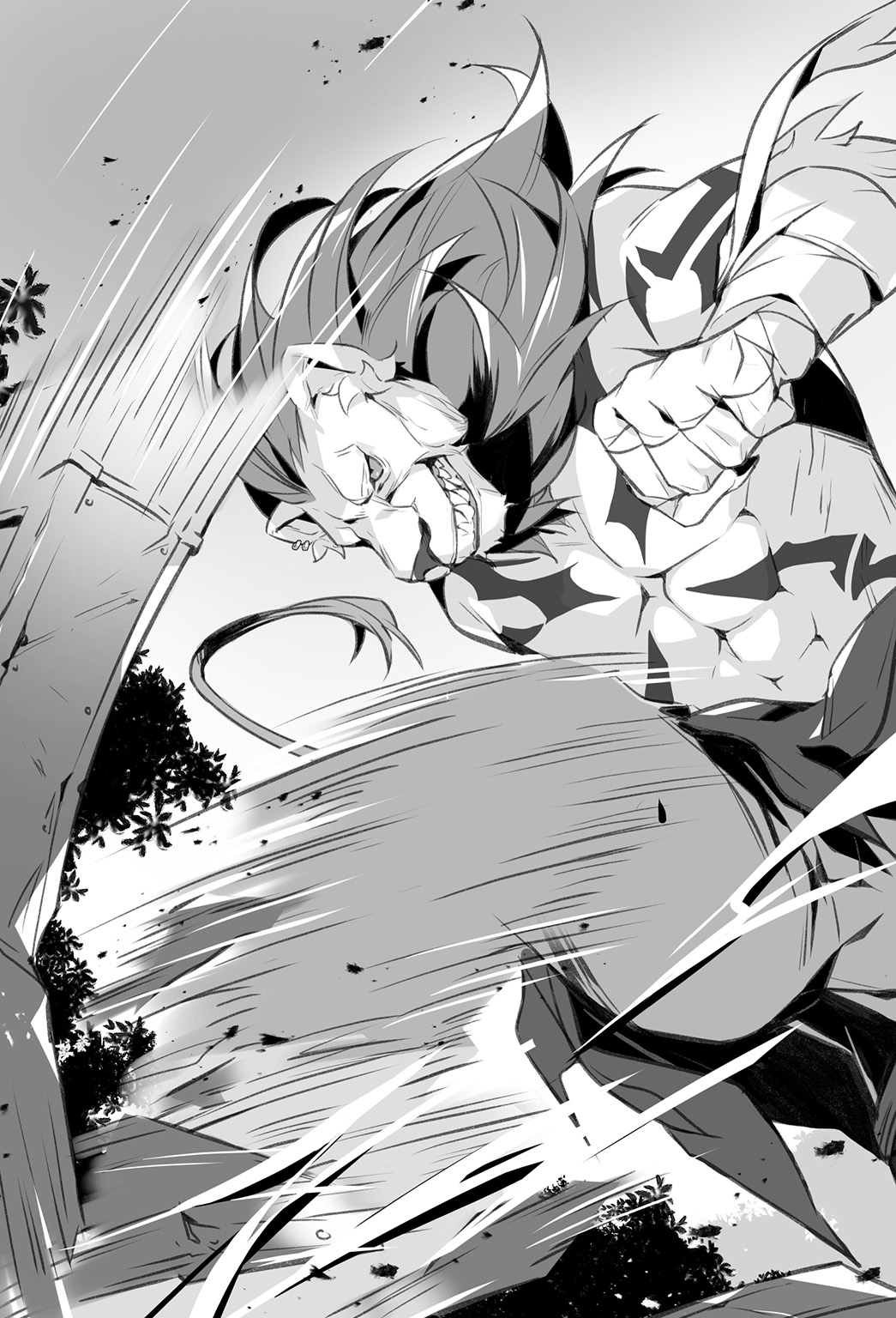 I order the living mails in a hurry, but Takaharu widely swings his right foot with his left leg as an axis, blowing three lilims away in one sweep. The living mails try to protect the lilims, Takaharu closes the distance to one of the lilims that was blown away, and strikes his heel down on the head of the collapsed lilim.
