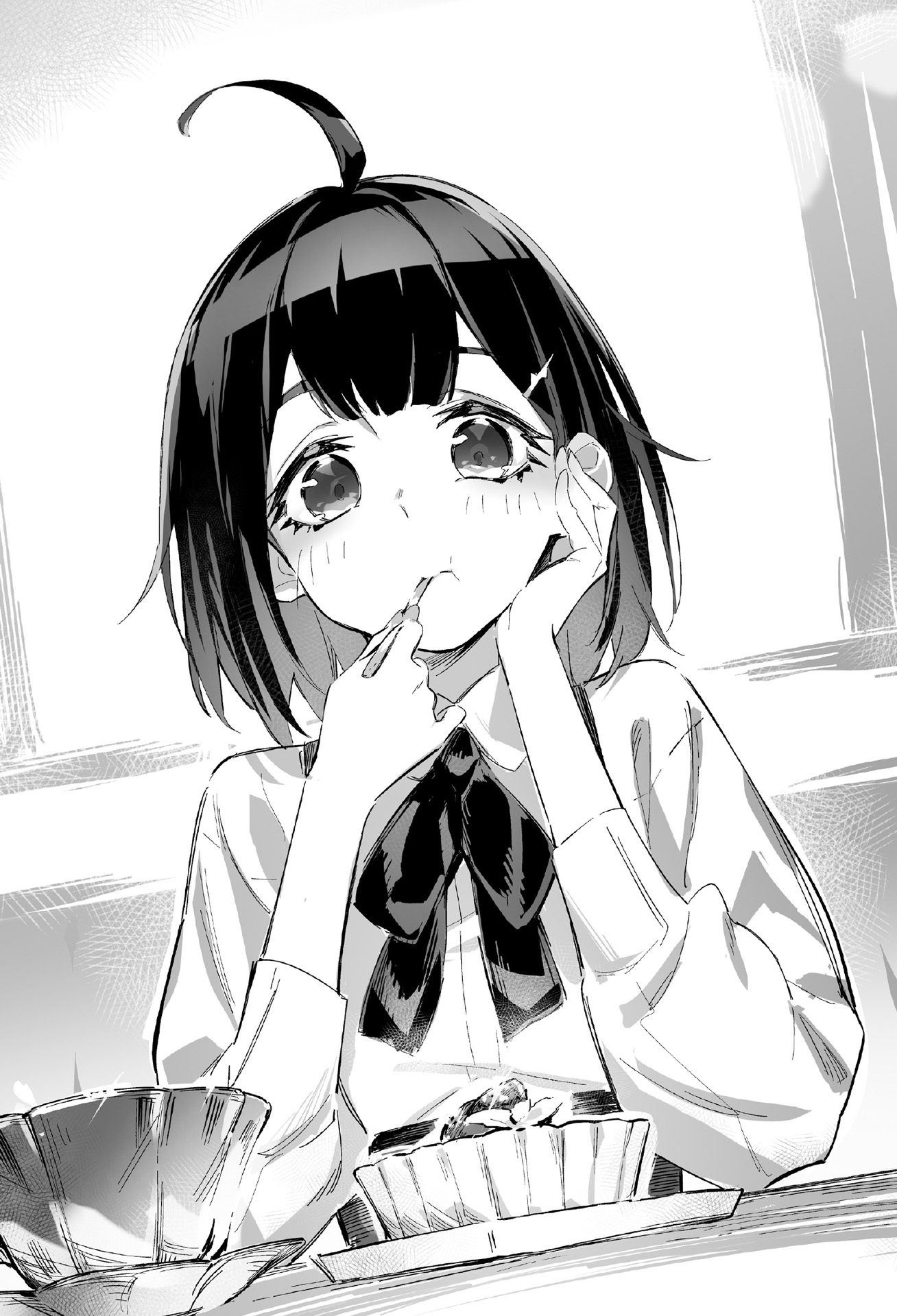 I decided to order coffee and a shortcake. I’ve hardly met any people who hate shortcakes and I might also be able to share some of it with Satoha. Meanwhile Satoha was scrutinizing the menu with a frown on her face. Her muttering, “Tart…pudding…,” and so on with a really cute voice put me in a bind.