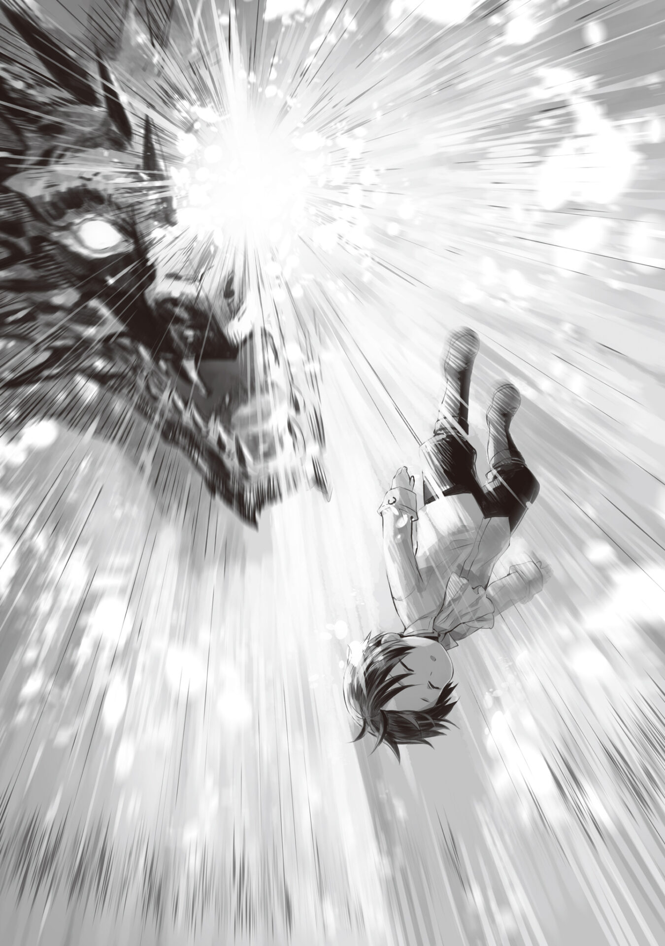 When I look behind me at once, I spot the stairs leading to the upper floor. Since there’s apparently nothing like stairs or corridors on the other side of the wall from where the dragon tank came, it should be safer, or rather, less of an energy waste to not awkwardly fight here, and instead escape backwards.