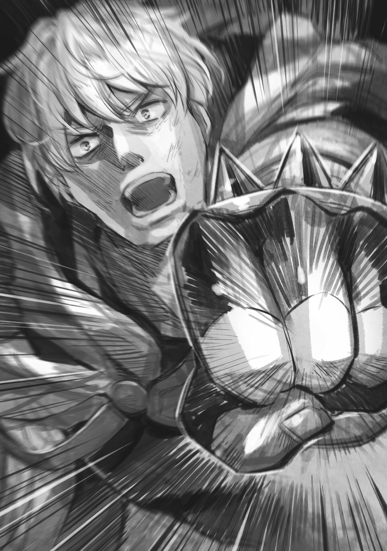 My full power punch first pries open Dattol Stein’s arms, and then smashes into his now defenseless chest. My fist only stops after penetrating all the way through his body.