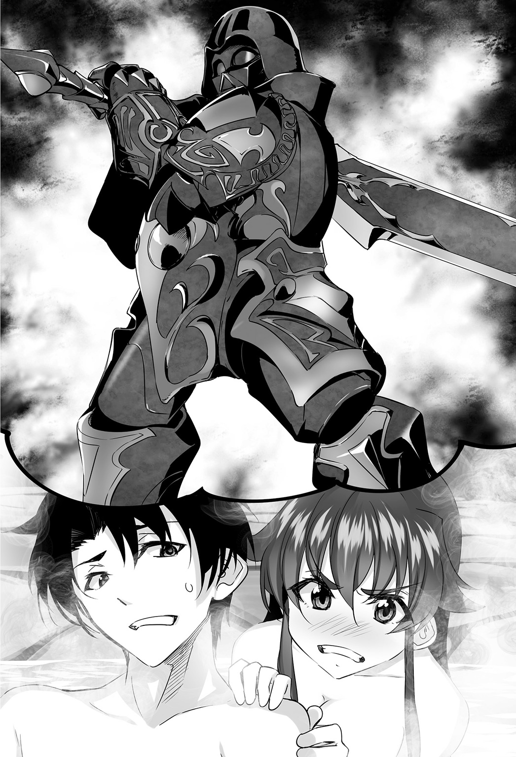 Even while thinking that it might be a waste of breath, Renya called out to the two for the time being, “Can’t you guys at least enter a bath quietly? Or rather, this is the men’s bath. If you really want to have a fight, go back to the women’s bath.”