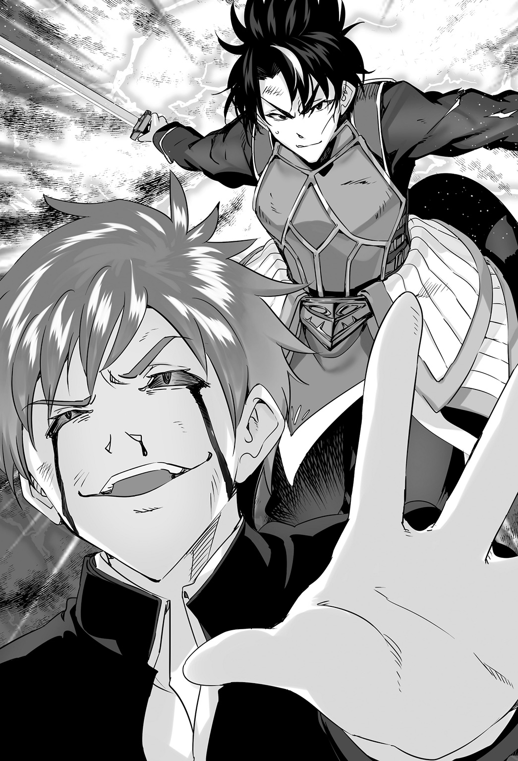 Ignoring Renya who continued to ponder whether Kazuya was actually following the logic of it being okay since it was a big army ganging up on a smaller group, and not a group ganging up on a single person, Kazuya pointed at Renya, declaring with a loud voice, “Let’s conclude this with a duel between generals! Kazuya vs. Renya! I request a duel against you!”