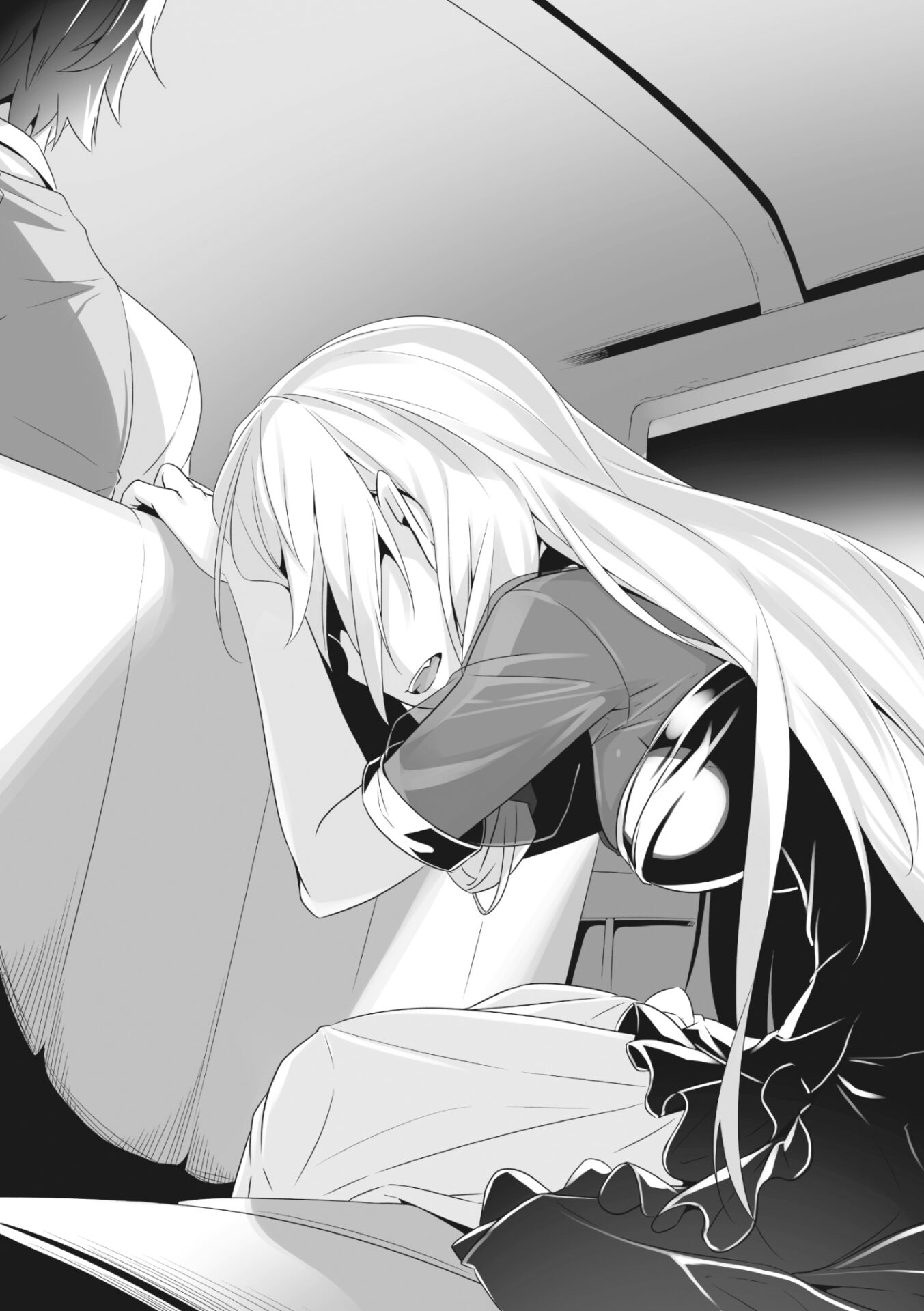 He continued to stare vacantly at Lumi’s back. His eyes followed the swaying ends of her hair. The dull silver radiance burned itself into his eyes, and just as the swaying was about to lull him to sleep, Lumi suddenly turned around.