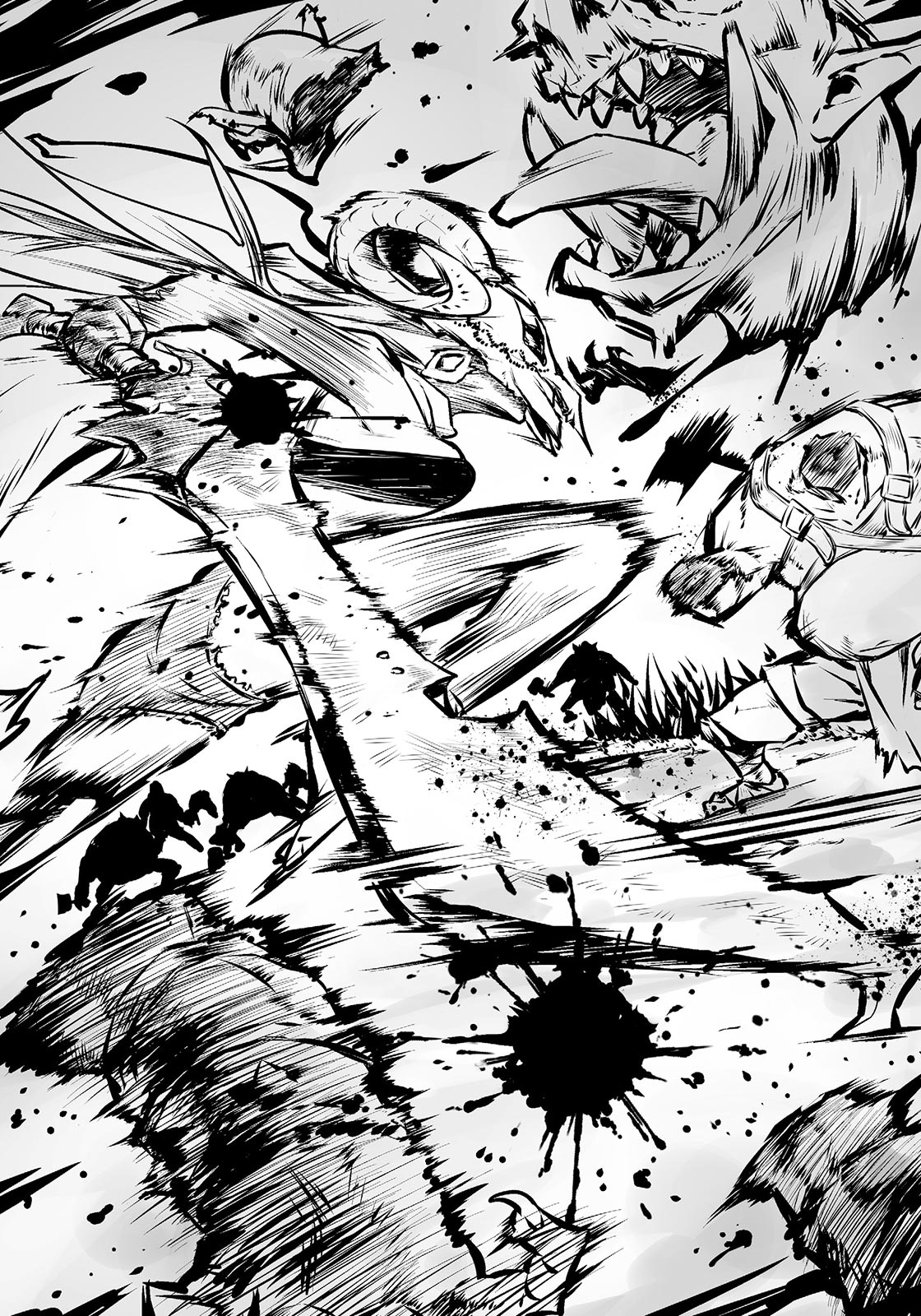 Fortunately, the orcs are fighting over the food ─ the meat that used to be Mr. Favore and the driver ─ they’ve already procured. If the guards protecting the coaches in the front and rear use that time to come running…
