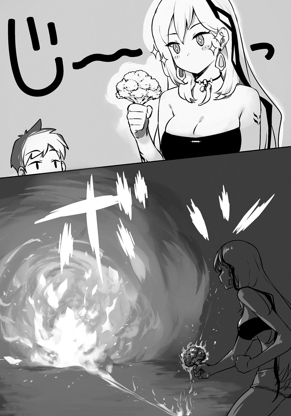 “Huh…? Sure.” Elemia obeys Shea’s instruction, despite having drawn back from this cruel scene.