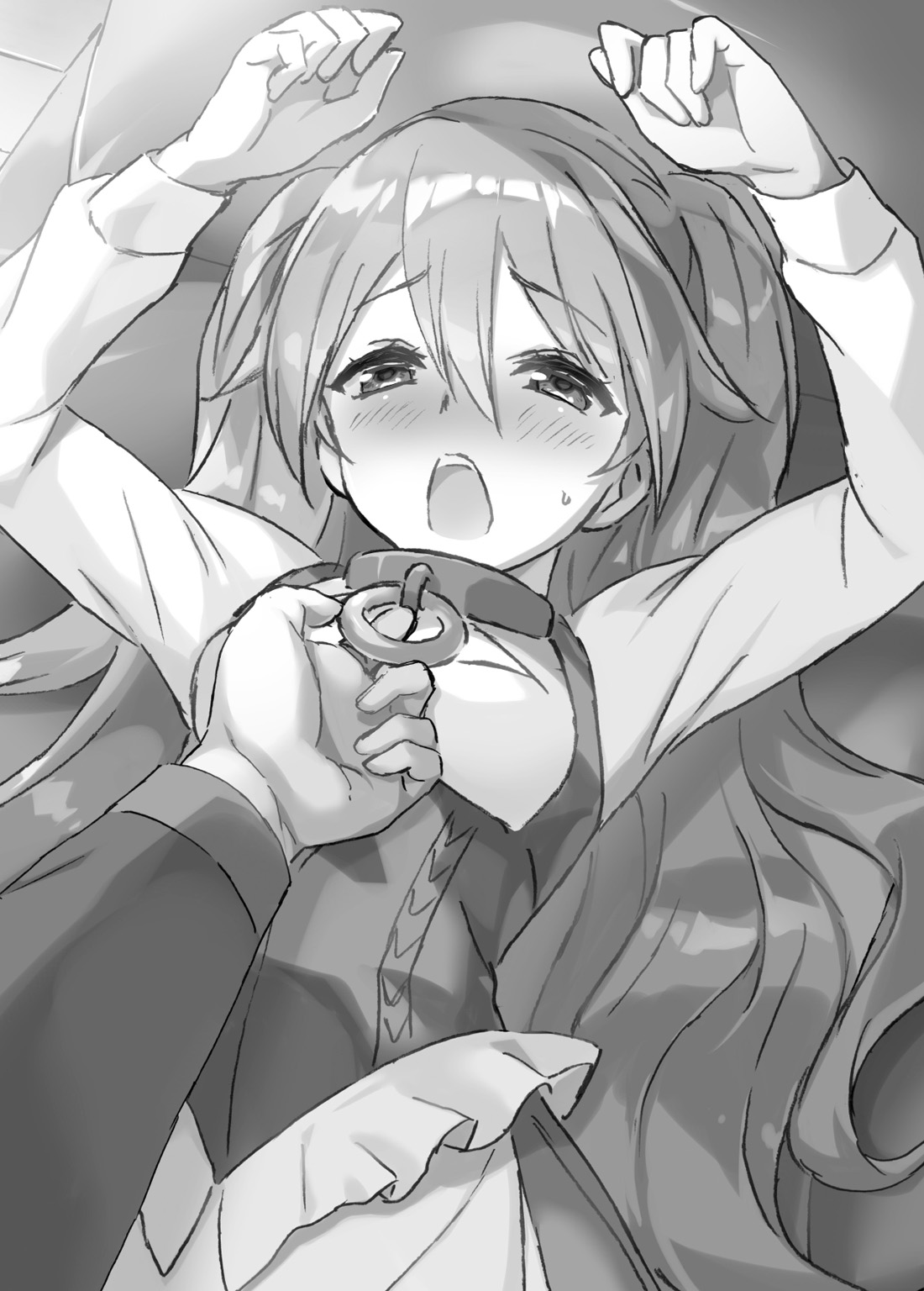 She had tied her red, long hair into bundles at the sides. Freckles covered her face around her bridge nose, and the expression of her eyes seemed to be brimming with conceit. A white dress hid her skinny body, and for some reason, she was wearing a leather collar.