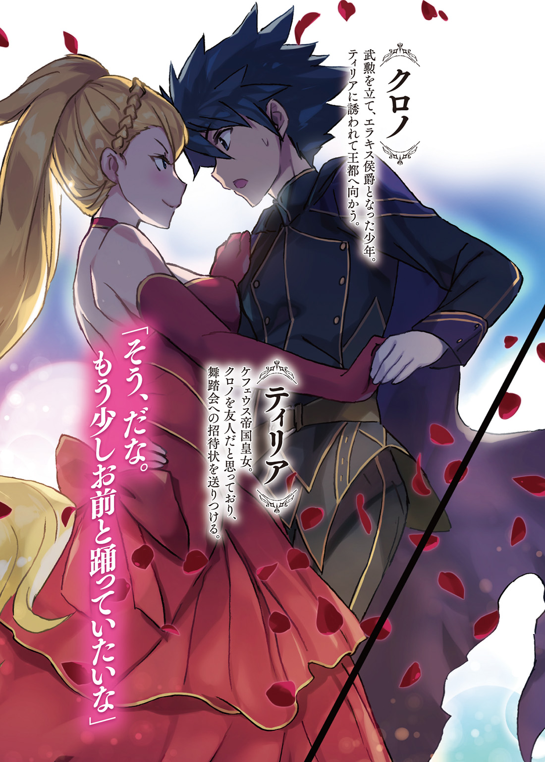 Tilia thrust her glass high in the air, followed by Chrono and the others imitating her. Just like this, the night of the ball advanced.
