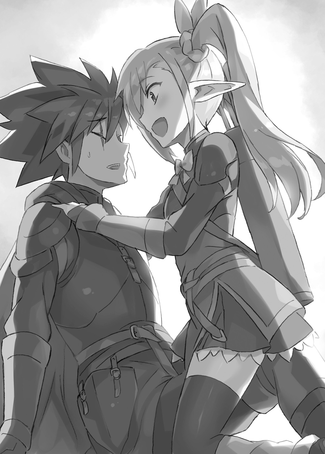 Shaela’s emotions burst forth and she started to sprint. Her feet got twisted and she fell over. Probably having noticed her, Chrono separated from Taur and walked over.