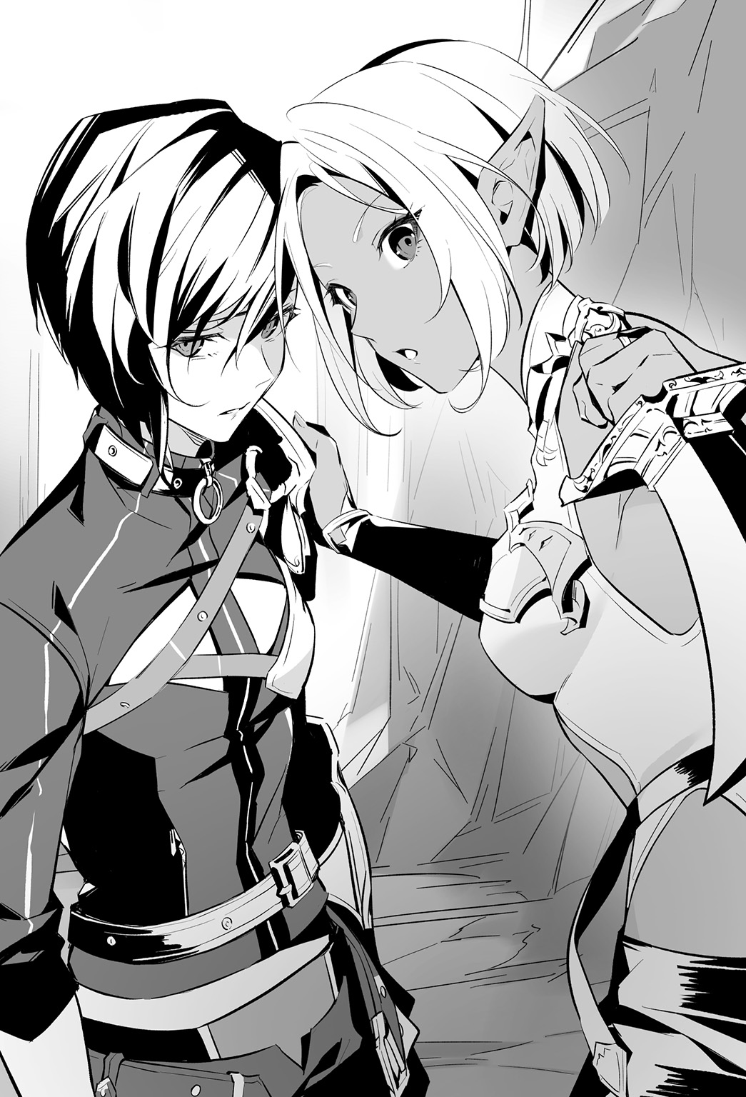 I hurriedly hold back the dhampir, who had made her resolve with her eyes closed, and Chloe who’s about to swing her dagger at that dhampir.